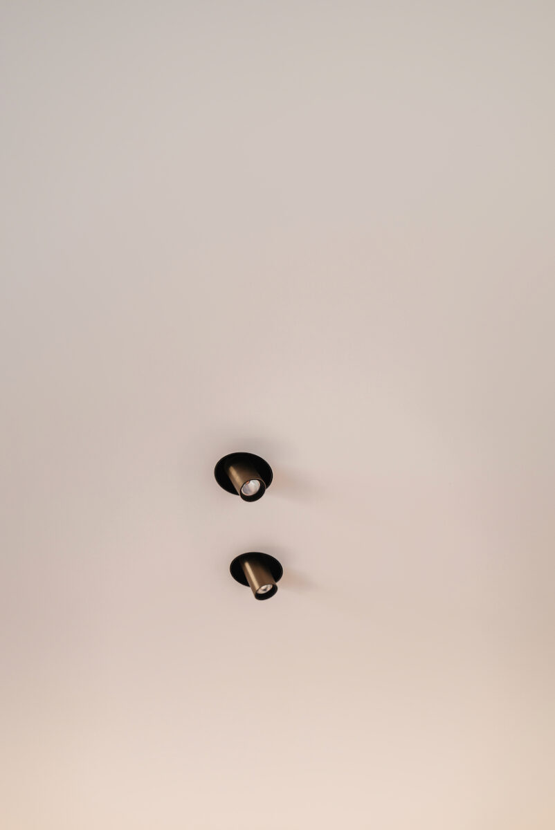 In de leefruimtes en slaapkamers werd een akoestisch spanplafond geïntegreerd. Dit zorgt niet alleen voor een aangename akoestiek, maar laat ook toe om technieken onzichtbaar weg te werken.
